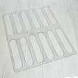 Трафарет для шоколаду"Еклер 1", 13*2,5 см містить дванадцять отворів для створення елементів декору з шоколаду для прикраси еклерів.Кондитерський трафарет для створення шоколадного декору, завдяки якому не тільки професіонал, а й кондитер-початківець легко зможе зробити красивий, стильний і естетичний дизайн своїх виробів (тортів, десертів). Розміри декору: довжина – 12 см, ширина – 2,5 см.Габаритний розмір трафарету – 22 * 27 см.Товщина трафарету – 1,5 мм.Термін придатності не обмежений.Матеріал – ПЕТ, має дозвіл на контакт із харчовими продуктами (з цього матеріалу виготовлені пластикові пляшки для води). Артикул - 10035